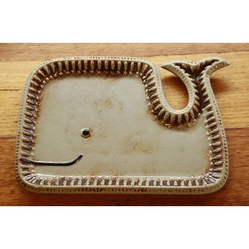 Ceramic whale dish featuring a patterned raised edge.