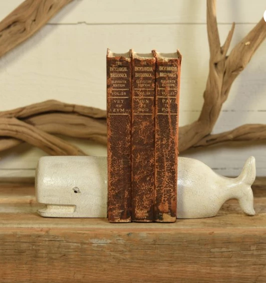 Make an ode to the seas with this pair of beautiful hand painted cast Iron white whale bookends.