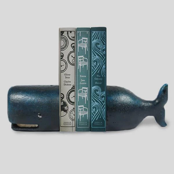Make an ode to the seas with this pair of beautiful hand painted cast Iron whale bookends.