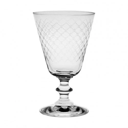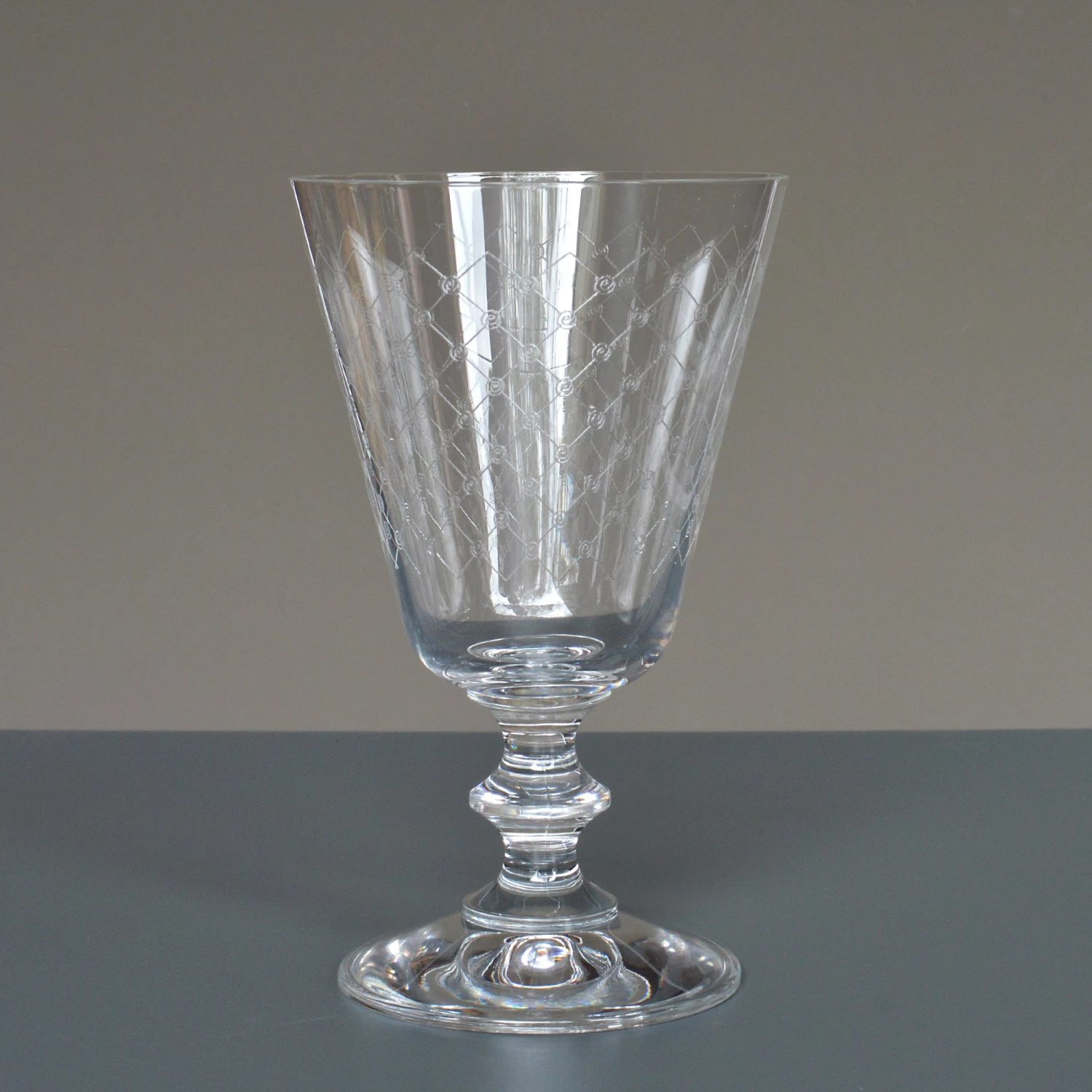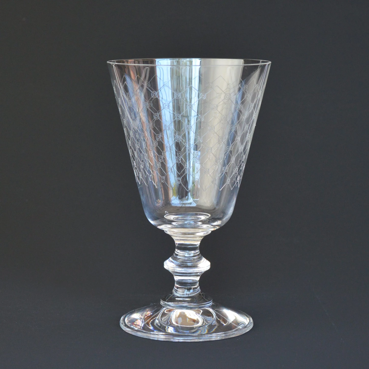 Elegant and fine glassware with intricate delicate fishnet detail.