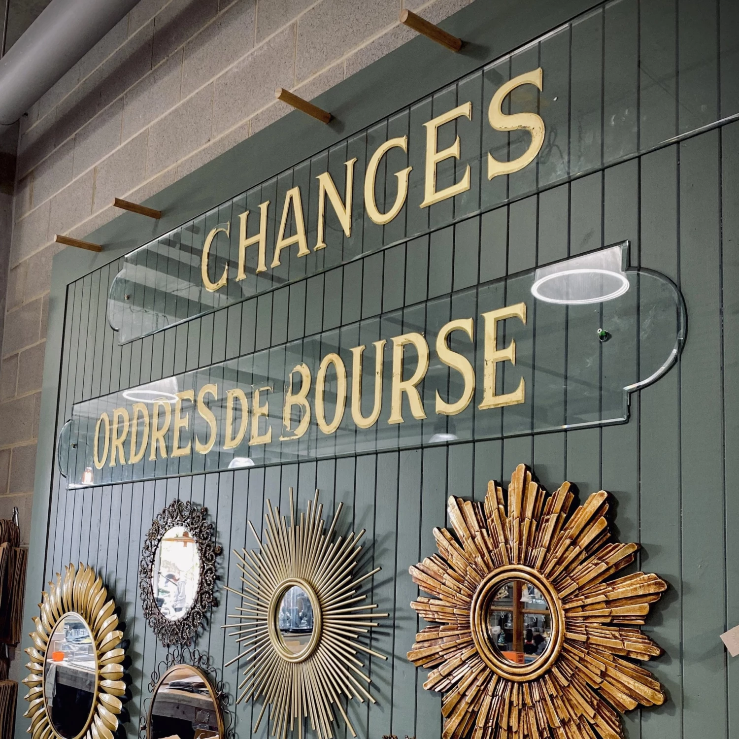 A magnificent original French bank signs Gold gilt lettering on clear glass.