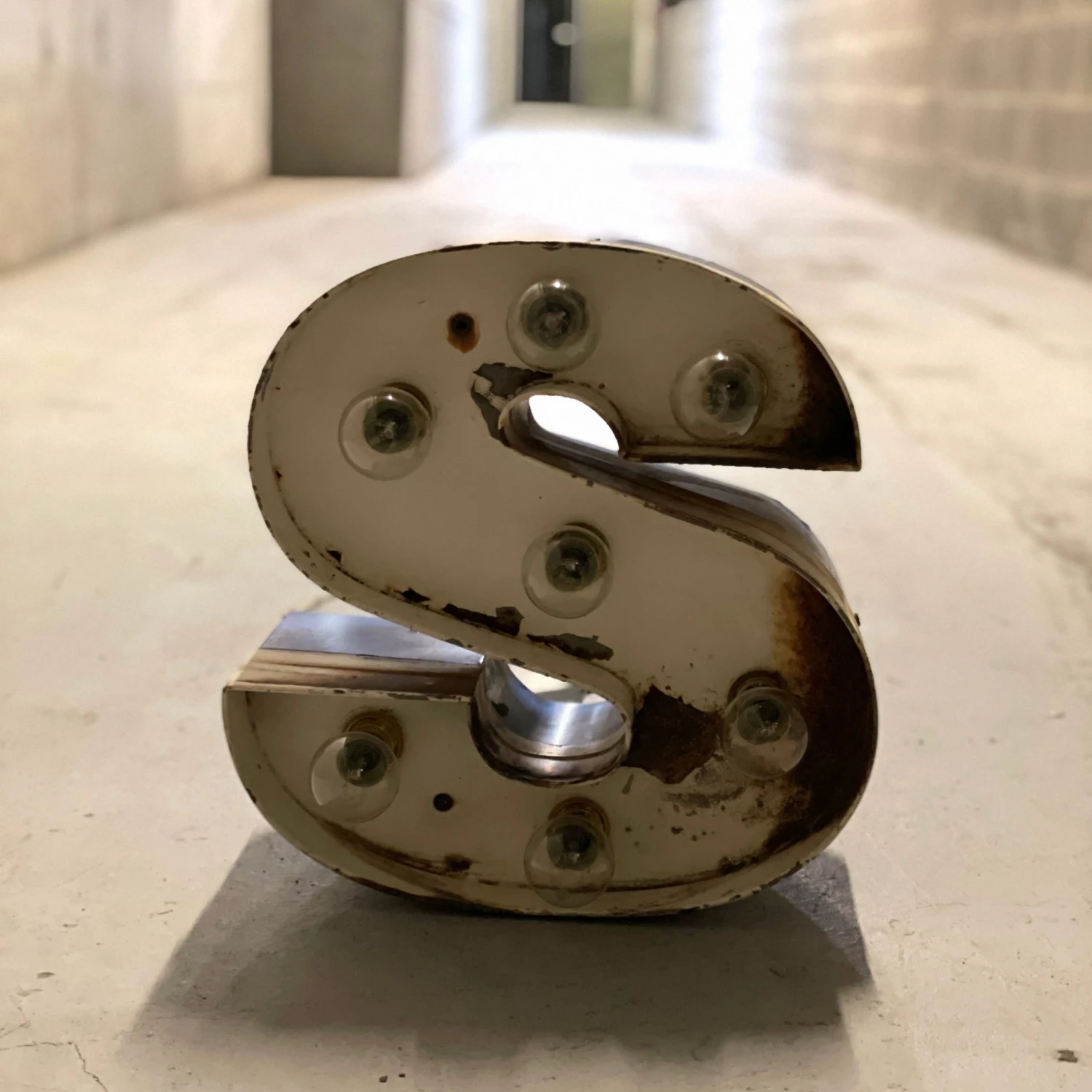 Reclaimed from a larger vintage sign in Europe this unique, bold and graphic piece is made from blue and white metal and has gained the perfect aged patina. Rewired to Australian standards whilst being kept as close as possible to original condition.
