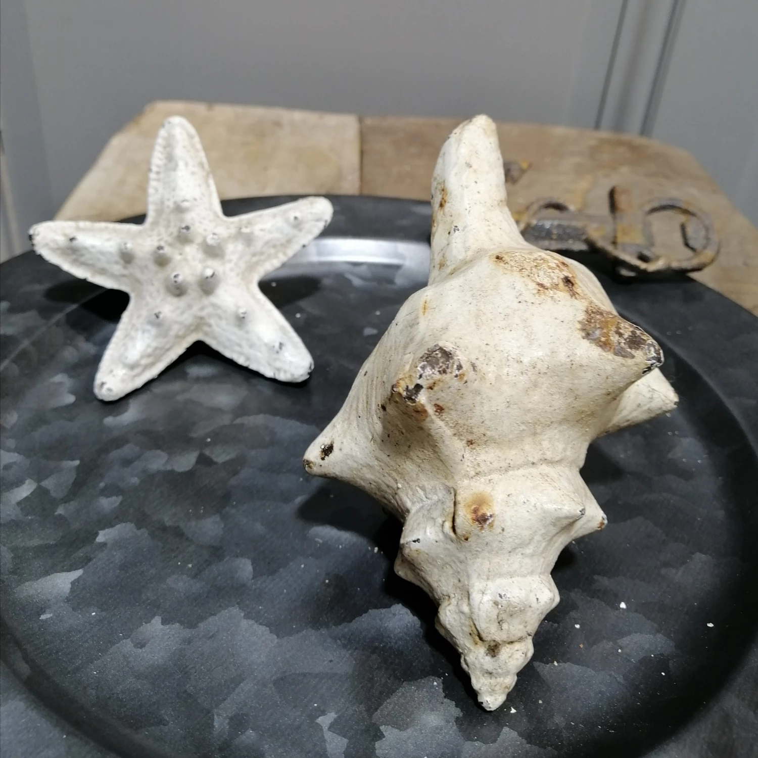 Hand Painted Cast Iron Shell Figure, 14 cm.
