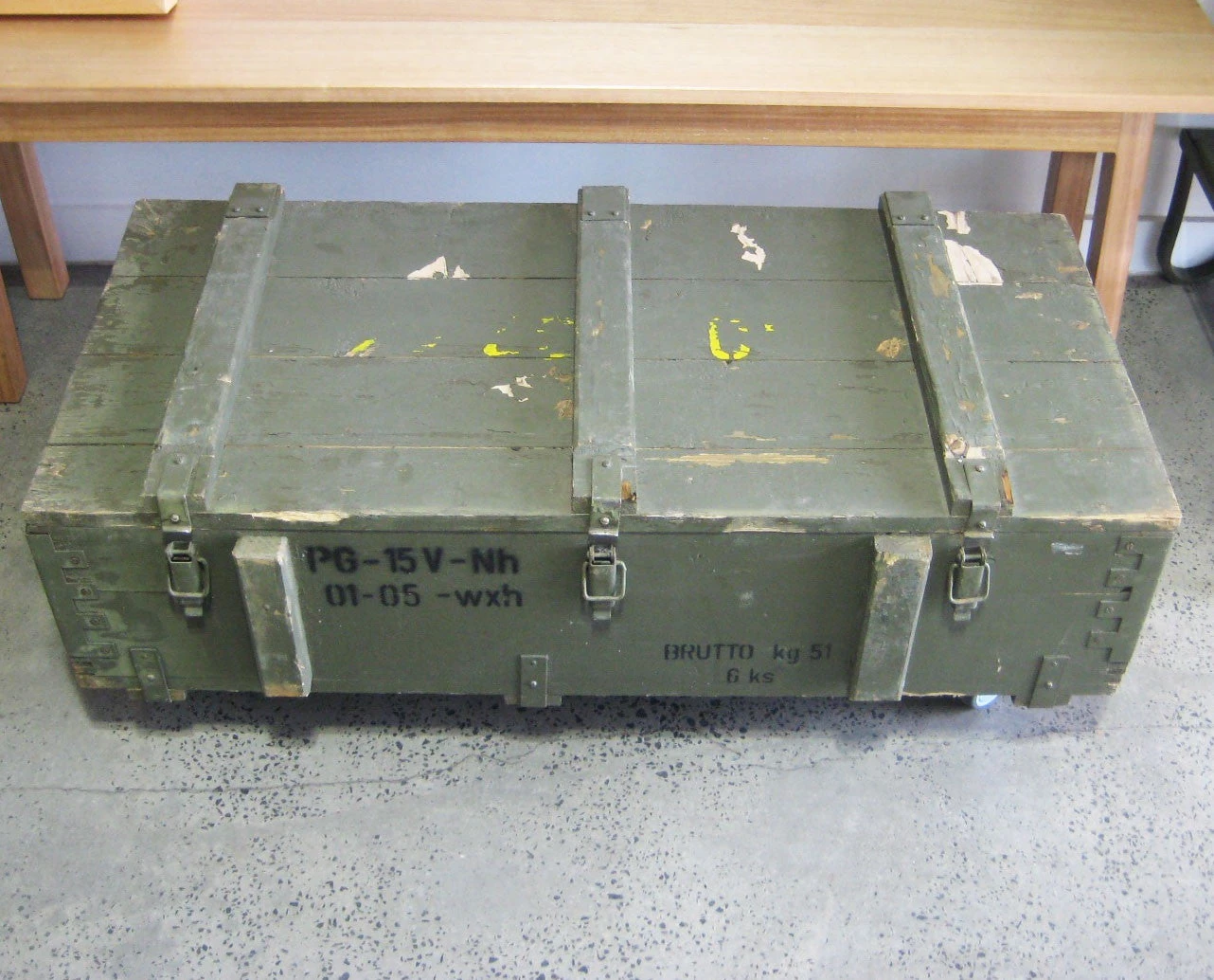 Authentic vintage army trunk with new castors, perfect for a feature coffee table.