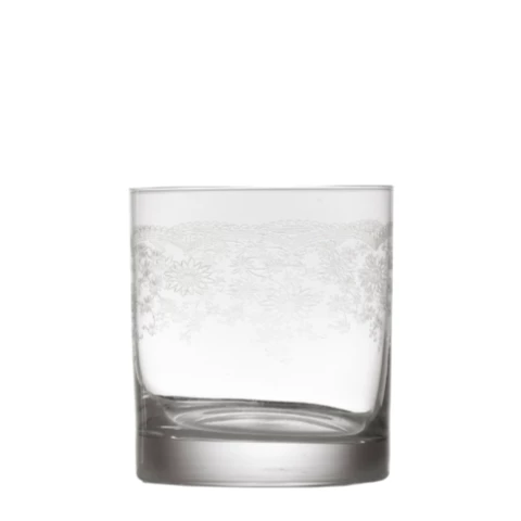 Elegant and fine glassware with an intricate & delicate floral detail.