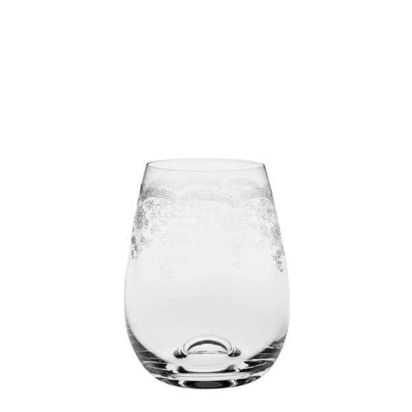 Classic Stemless Wine Glass with glorious Floral Engraving.